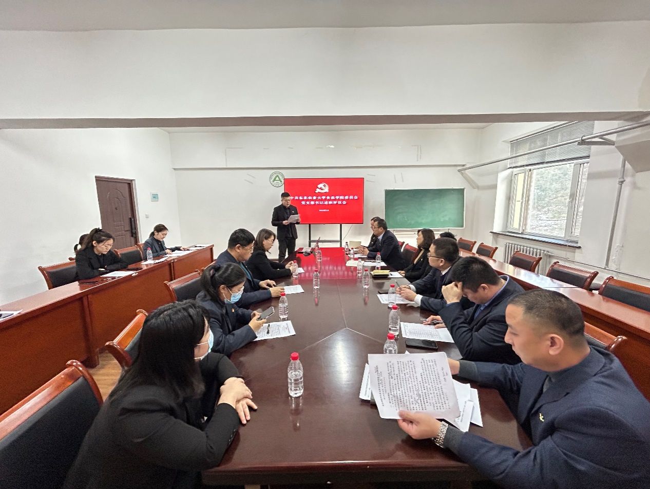 为深入贯彻落实习近平新时代中国特色社会主义思想,进一步加强基层党支部建设,压紧压实管党治党、强基固本的政治责任,按照学校《2023年度党组织书记抓基层党建述职评议考核工作方案》要求,15日下午,我院党委在学院315室组织召开2023年度基层党支部书记述职评议考核会议。学院党委委员、全体党支部书记参加会议。会议由学院正处级辅导员崔丽主持。