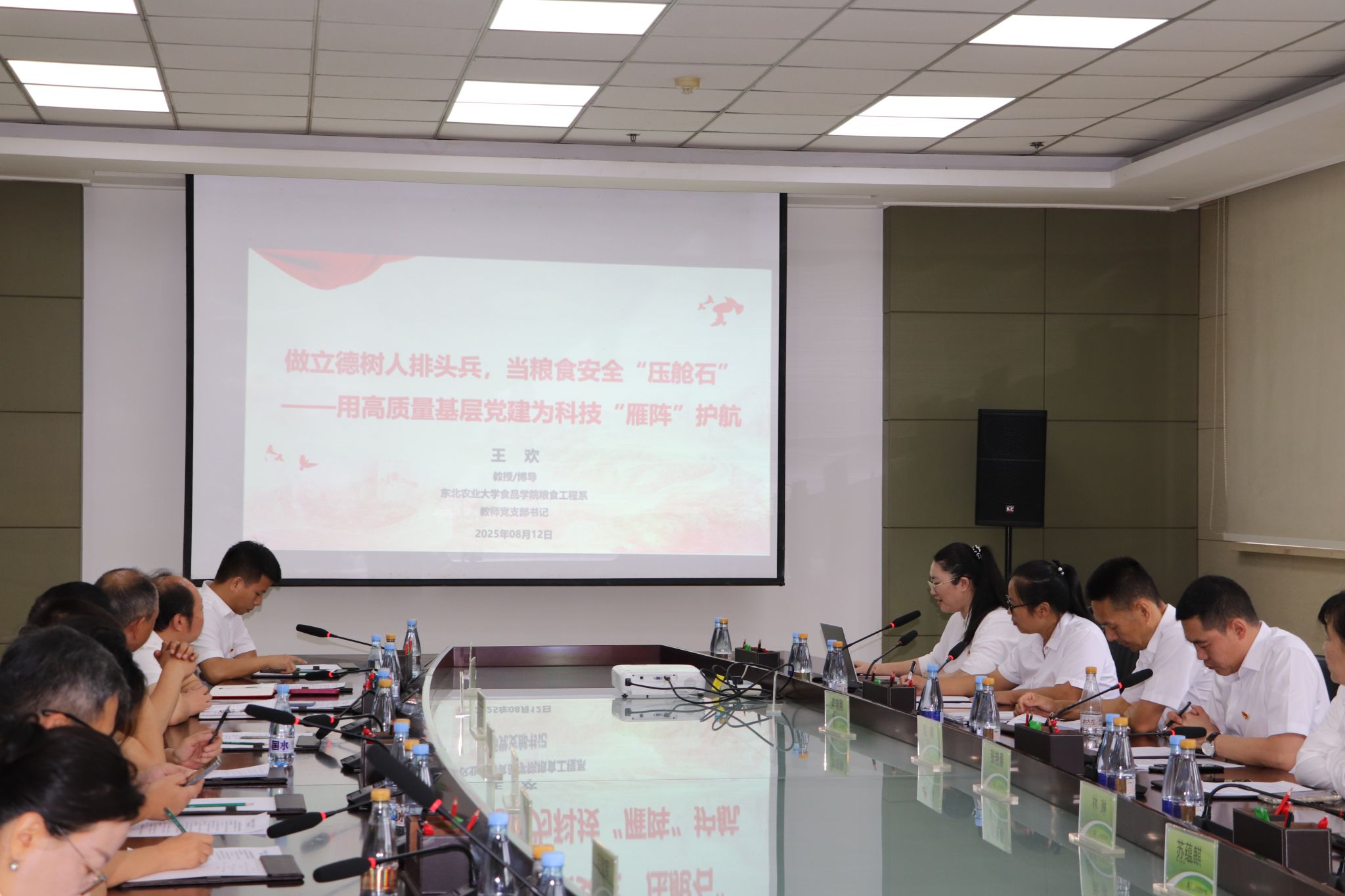 王欢分享支部党建工作与教学科研、人才培养融合的特色做法和成效。她指出,党支部扎实践行“为党育人、为国育才”的使命担当,坚守粮食精深加工领域,扎实推进党的建设与教育教学、科学研究、人才培养、社会服务等中心工作深度融合,以高质量党建引领推动事业高质量发展,在助力当好国家粮食安全“压舱石”中创先争优、担当作为。