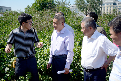 与会代表首先到买球赛的app官网设施园艺工程中心蓝靛果种质资源圃进行现场观摩。霍俊伟教授从“寒地小浆果开发利用国家地方联合工程研究中心”的组建、目标、建设任务、职能等进行了介绍。重点介绍了蓝靛果种质资源的特性、选育的优良品系、繁殖技术等。孔德刚教授演示了蓝靛果的机械化采收。