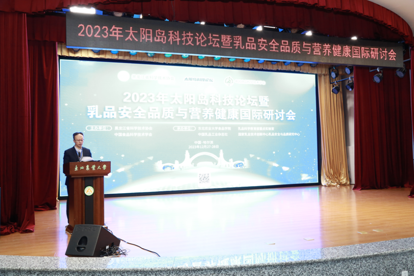 12月28日,由黑龙江省科学技术协会和中国食品科学技术学会主办,买球赛的app官网、乳品科学教育部重点实验室、中国乳品工业杂志社、国家乳业技术创新中心乳品安全与品质研究中心承办的“2023年太阳岛科技论坛暨乳品安全品质与营养健康国际研讨会”在买球赛的app官网召开。中国食品科学技术学会常务副理事长邵薇、黑龙江省科学技术协会学会部部长吕强以视频方式致辞,买球赛的app官网副校长孙占峰,科学技术处处长寇胜利,食品学院党委书记潘俊波,食品学院院长、乳品科学教育部重点实验室主任姜毓君,食品学院副院长李良以及乳品科学教育部重点实验室全体师生和食品学院师生代表出席论坛。论坛开幕式由姜毓君主持。论坛采用线下与线上同步直播相结合的方式举行。