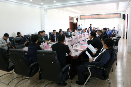 最后,郑秋鹛副校长结合双鸭山市及各县区面临的农业发展技术难题,有针对性的介绍了学校在此方面已取得的科技成果。她指出,有些可以解决的技术问题,学校新农村发展研究院要马上组织相关方面专家赴双鸭山市调研对接,尽快落实。目前还不够成熟、需要进一步研究的技术难题,学校要组织专家调研论证、有针对性开展研究攻关,积极对接,进一步加快双方实质性合作的步伐。