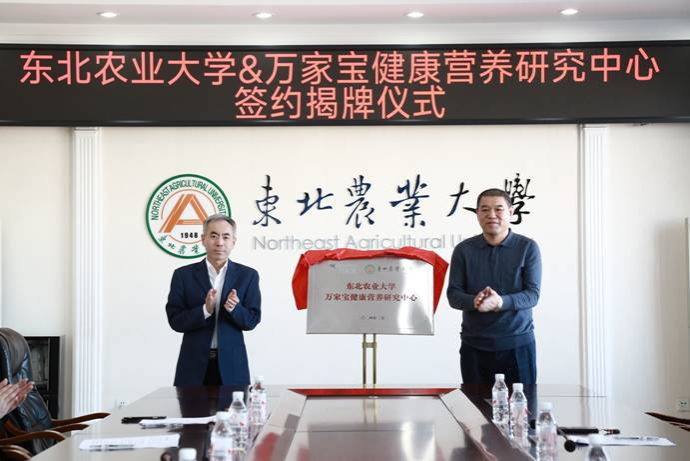 孙占峰、柴宝全共同为“东北农业大学&万家宝健康营养研究中心”揭牌