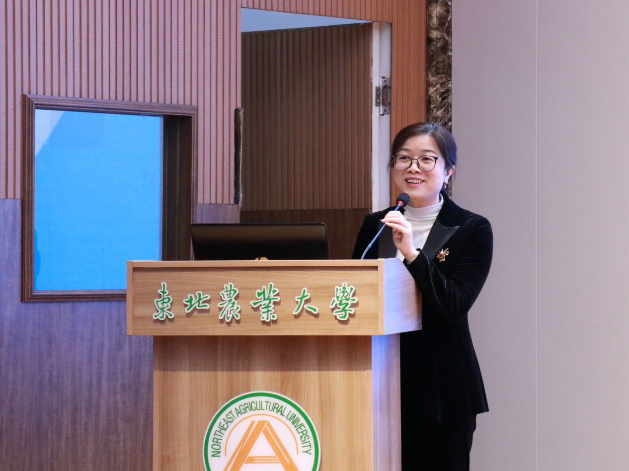 我院2024级食品科学专业博士研究生郑淼代表获奖学生发言。她感谢学校和澳优乳业对同学们的深切关怀,并表示作为新时代大学生要将感谢之情化作成才动力,聚焦乳品科学与功能性食品研发领域,踔厉奋发、努力拼搏,将科研成果写在祖国大地上。