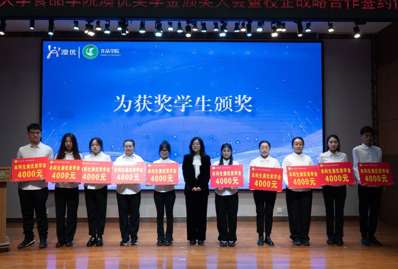 据悉,澳优乳业成立于2003年9月,专业从事婴幼儿配方奶粉和营养食品研发、生产、销售及服务。2024年,公司在我院设立澳优奖学金,每年10万元用于奖励我院乳品工程相关专业本、硕、博学生及科研成绩突出的青年教师,为食品学子和青年教师提供支持,助力他们追逐梦想,成长为未来乳业发展的生力军。