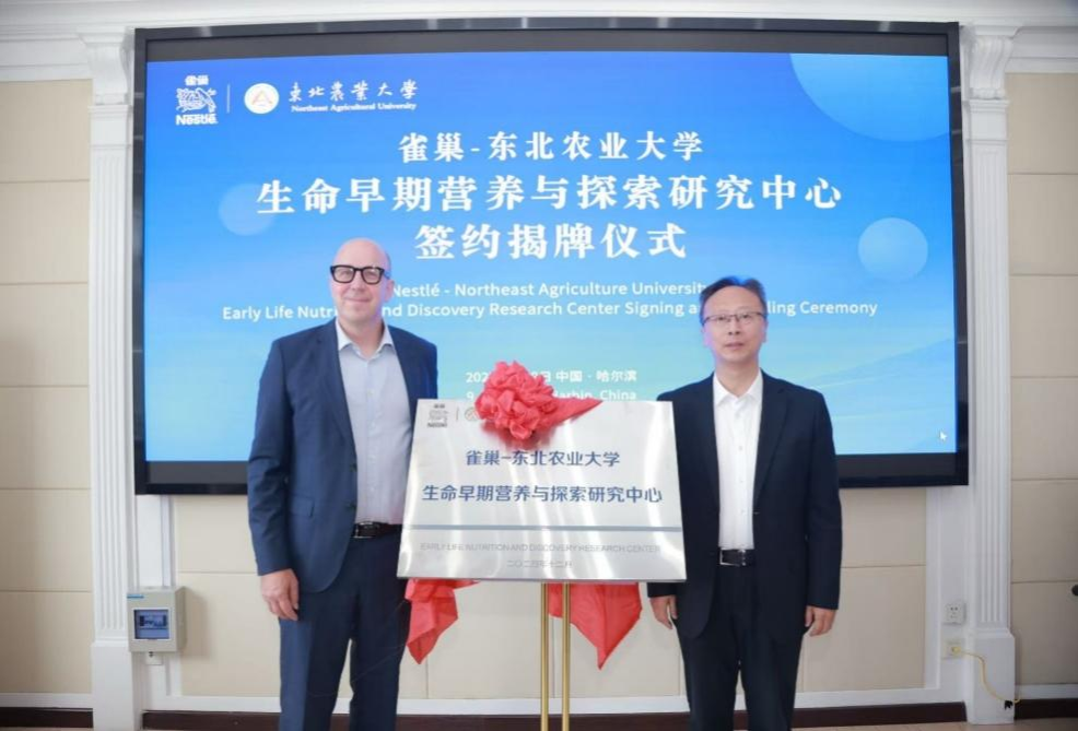 姜毓君、Marc Alder共同为“雀巢——东北农业大学生命早期营养与探索研究中心”揭牌。