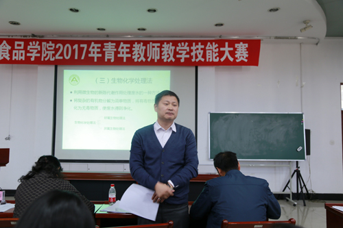 为进一步提高教师教学技能水平和师资队伍整体素质,4月12日,食品学院在食品楼三楼报告厅举办了“食品学院2017年青年教师教学技能大赛”决赛,着力开展青年教师教学岗位技能大比武、展示课堂教学成果、分享教学实践经验。校工会副主席李巍、教务处副处长张伟应邀出席了本次比赛,学院党委书记张显伟、副院长刁铁军、李晓东、侯俊财及系主任代表张华江、王喜波、李春出席并担任评委,各系选拔推荐的6名教师,学院50岁以下中青年教师观摩了比赛。比赛由学院党委副书记、院工会主席潘俊波主持。