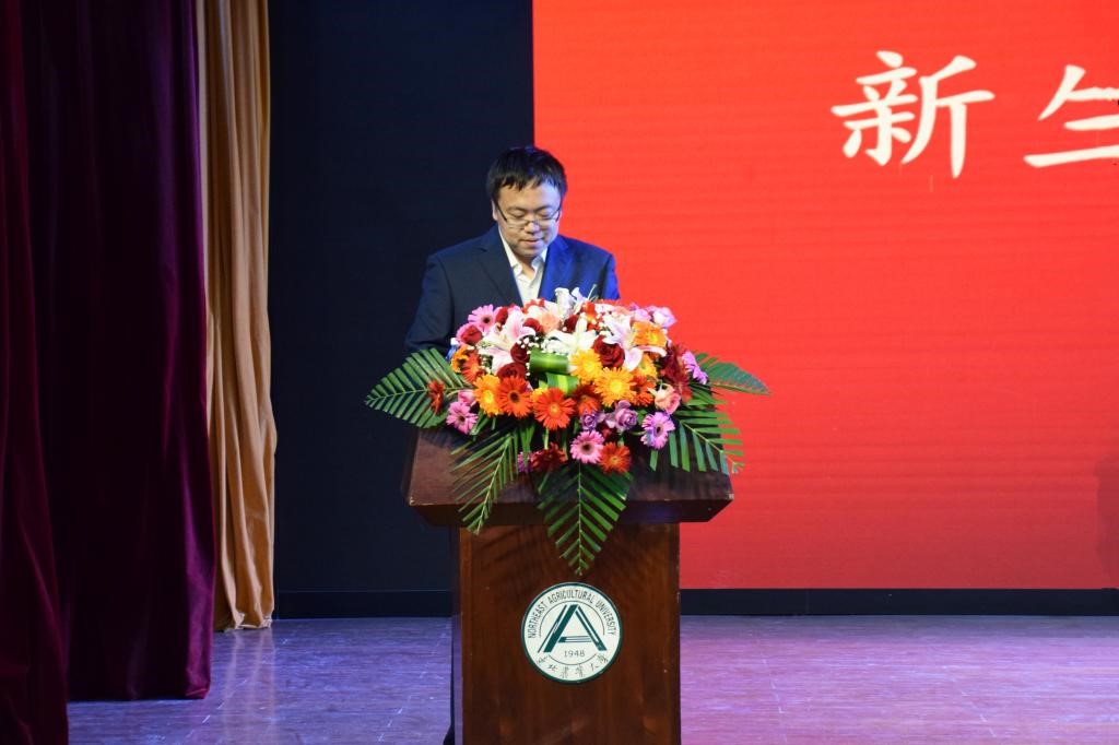 9月11日晚,食品学院2018级新生开学典礼暨迎新晚会在图书馆一楼报告厅举行。学院党委书记张显伟、院长江连洲、党委副书记潘俊波,副院长刁铁军、李晓东、侯俊财,国家乳业技术研究中心副主任姜毓君、食品质量与安全系主任王喜波、粮食工程系主任李良、全体辅导员及2018级全体本硕博新生参加了大会。开学典礼由学院学工办主任王丽萍主持。