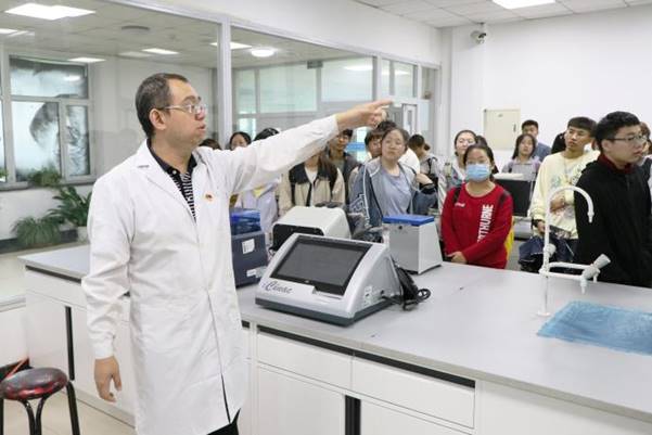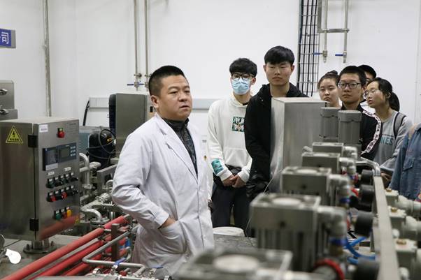 在参观环节,新生们参观了食品学院国家级虚拟仿真教学平台、乳品中试车间、仪器分析共享平台以及学院大学生创业工作站。学院王浩、张宏伟、王玉堂、张赫、任皓威等5位老师分别就不同平台的作业领域、设备操控、工艺流程和服务能力等做了生动相近的示范和讲解。