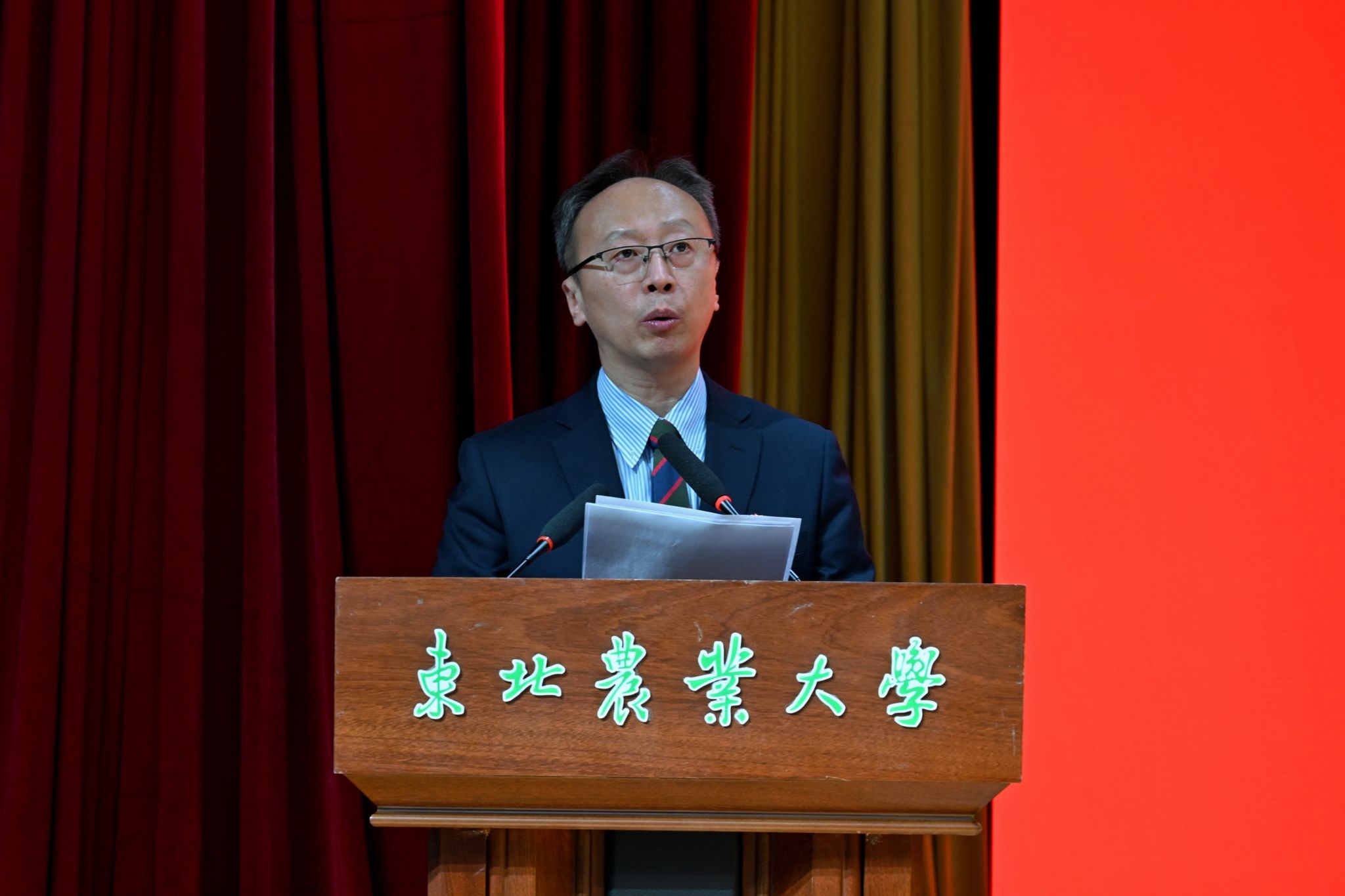 姜毓君代表学校对大会的召开表示热烈祝贺,并充分肯定了学院上一届党委取得的显著成就。他强调,学院要进一步巩固“十四五”期间发展成果,认真谋划好“十五五”规划,开创基层党建工作新局面。他提出三点要求,一是要以政治建设统领全局,进一步以高质量党建赋能学院事业高质量发展。要自觉贯彻新时代党的建设总要求和新时代党的组织路线,抓好党的理论武装,坚持民主集中制,全面提升基层党建质量,推动全面从严治党向纵深发展。二是要以战略思维谋篇布局,进一步推动新时代立德树人工程系统化实施。学院要在加强理想信念教育、构建大思政格局、建设高素质教师队伍上下功夫,坚持以立德树人为根本,牢固确立人才培养的中心地位。三是要以深化改革开创新局,进一步构建以一流学科建设为引擎的内涵式发展模式。要着力提高人才培养质量,加强学科内涵建设,推进“产学研用”深度融合,进一步推动学校“立足龙江、服务三农”能力的全面提升。