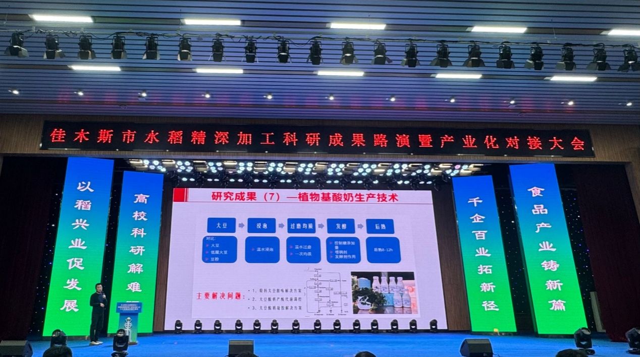 10月18日至19日,买球赛的app官网参加佳木斯市水稻精深加工科研成果路演暨产业化对接大会。来自江南大学、黑龙江省农科院等17家高校和科研院所的50余名专家学者,以及全市重点食品企业代表等350余人参加了大会。我院乳品工程系主任杜鹏参加对接大会。大会开幕式上,佳木斯市委副书记、市长王铁,省科技厅副厅长安建光,省工信厅副厅长羿宗胤分别致辞。