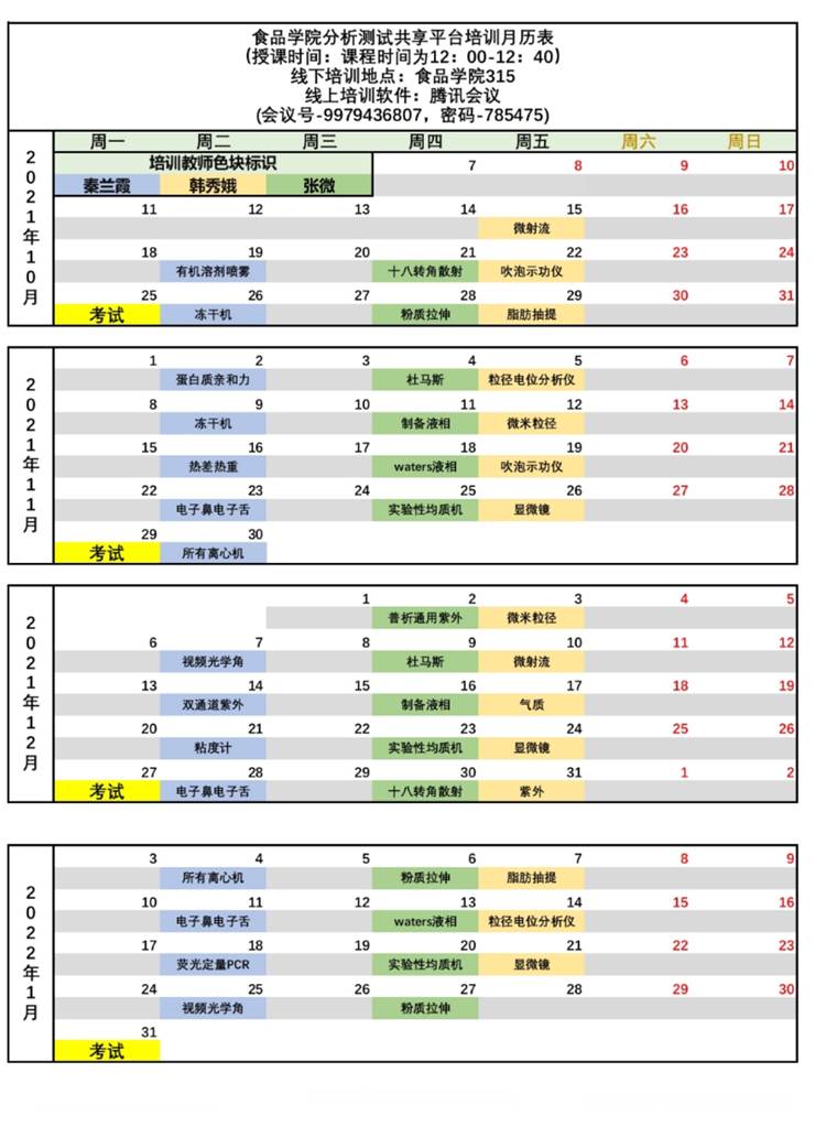 关于发布食品学院分析测试共享平台2021年下半年培训计划的通知
