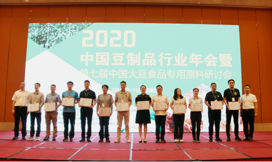 买球赛的app官网江连洲团队(右六)和王绍东团队(右七)荣获“中国豆制品行业科技创新推选项目”一等奖