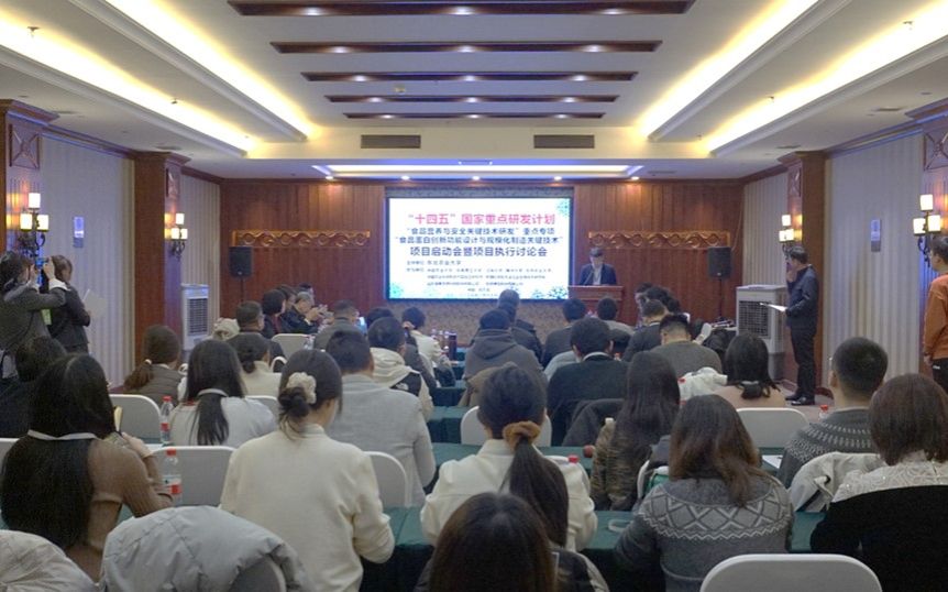 1月17日上午,由我院隋晓楠教授牵头的国家重点研发计划“食品营养与安全关键技术研发”重点专项“食品蛋白创新功能设计与规模化制造关键技术”项目启动会暨项目执行讨论会在哈尔滨召开。中国食品科学技术学会研究员王喆、北京市农业农村局一级巡视员马荣才、中国农科院质标所金芬研究员、沈阳农业大学校长李斌、东北农业大学教授江连洲,黑龙江省科技厅科技二处副处长王宁,买球赛的app官网副校长孙世钧,科学技术处(社会科学处)处长寇胜利、副处长王子龙及项目、课题负责人、骨干成员等30余人参加会议。会议由寇胜利、王喆分阶段主持。