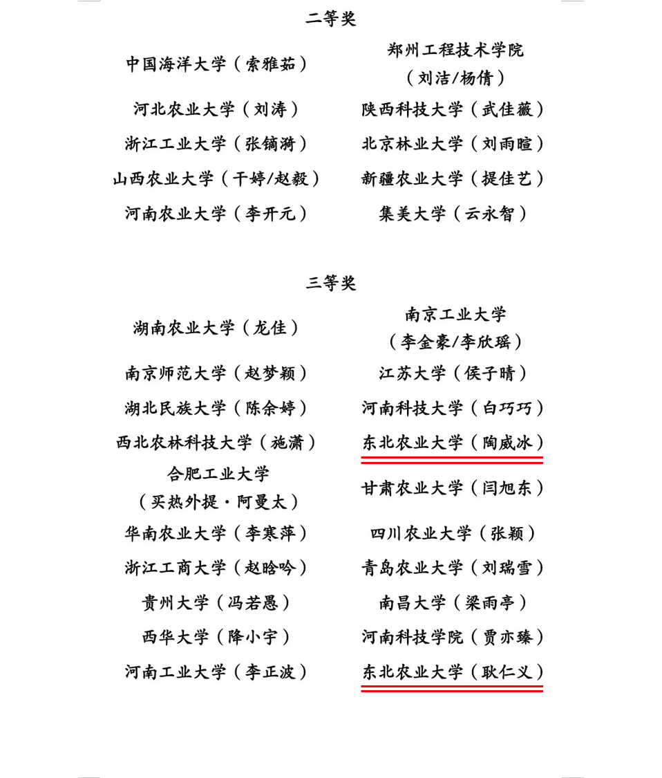 122日,由中国营养保健食品协会、教育部食品科学与工程类教学指导委员会主办,华中农业大学食品科学技术学院、中国农业大学食品科学与营养工程学院联合承办的全国大学生“食品安全与营养中国行”志愿服务大赛答辩交流会落下帷幕。我院教师刘骞,辅导员吕懿超、陈旭、任萌指导,本科生陶威冰带领的“‘膳’自城郭 ‘食’为老饕”志愿服务队和教师杨鑫焱、徐宁,辅导员高夕媛指导,本科生耿仁义带领的“乳此安心,乐享成长”志愿服务队获得三等奖。