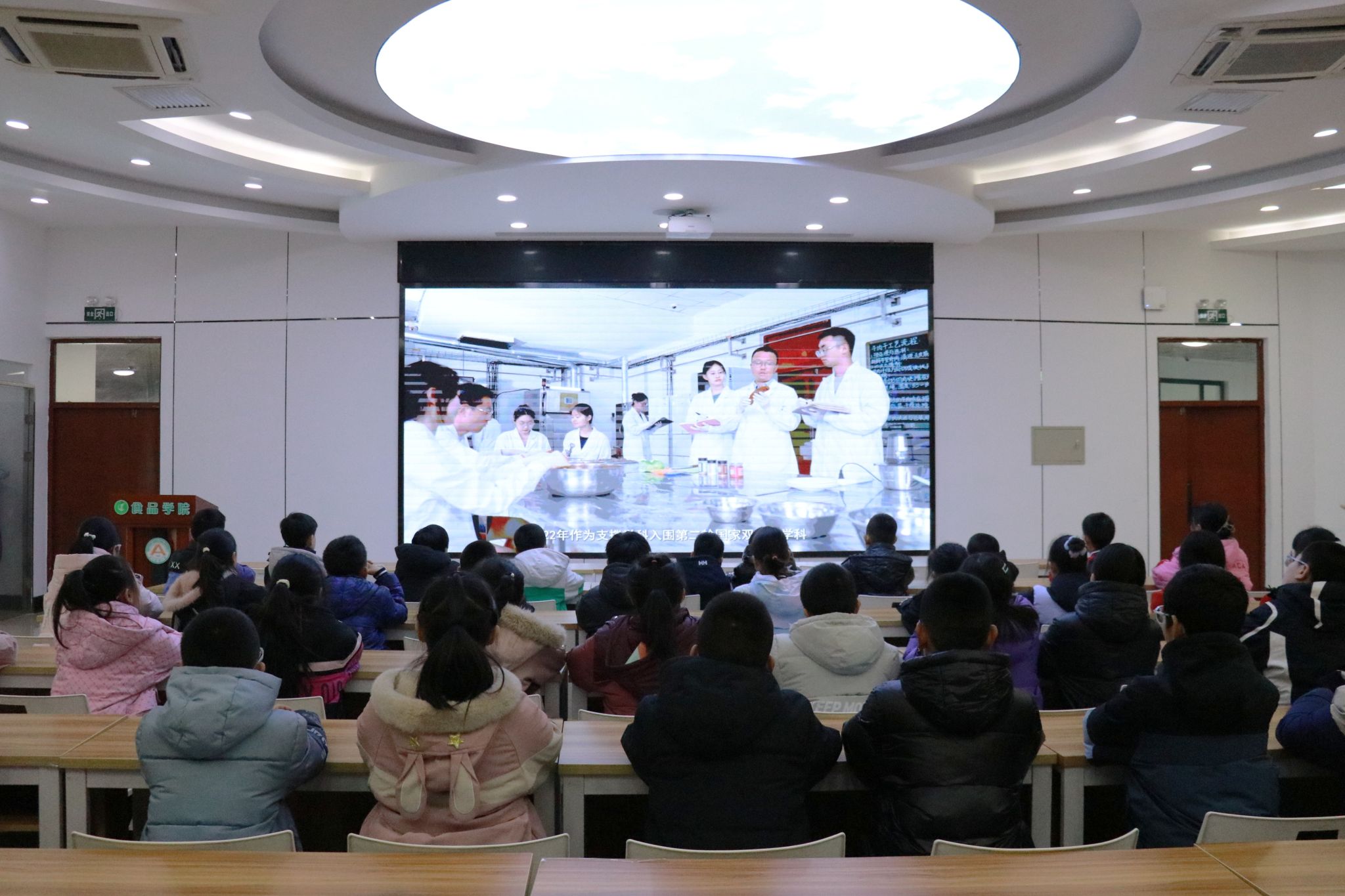 随后,师生共同观看了学院宣传片,全方位了解学院在学科建设、科学研究、人才培养和社会服务等方面的成果,真切感受到食品科学与日常生活的紧密联系,激发了对自然科学的探索兴趣。